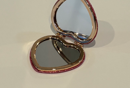 This Pink shimmer heart shaped compact mirror fits easily into your bag and makes a nice gift